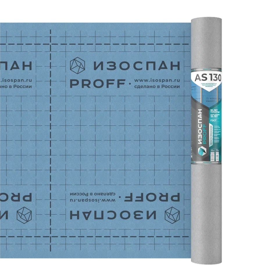 Гидро-ветрозащитная мембрана Изоспан AS изготовлена из полипропиленовой микропористой мембраны. С обеих сторон армирована полипропиленовым нетканым полотном.