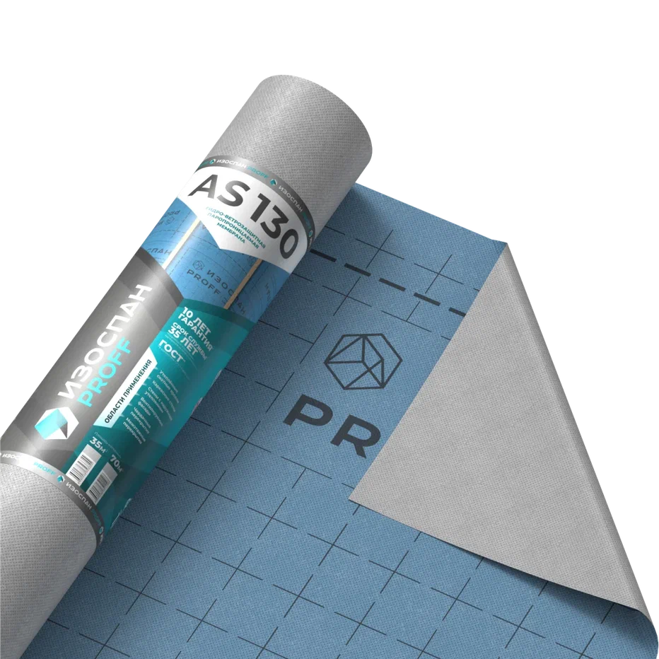 Изоспан AS одновременно гидрофобный и паропроницаемый материал, поэтому она надежно защищает материалы и конструкции от вредоносного воздействия влаги. Важно знать, что Изоспан AS нельзя использовать как основное или временное кровельное покрытие!